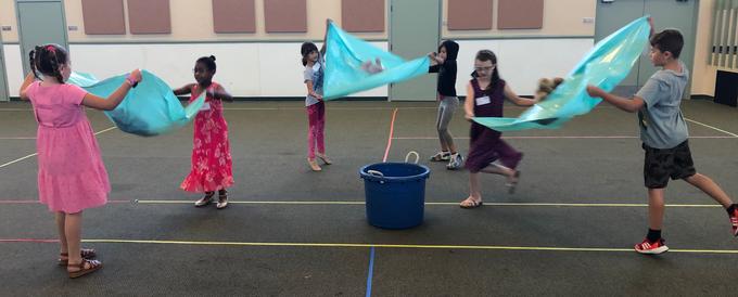 The children worked together as 'oceans' to toss their 'Jonah' into the 'fish'!